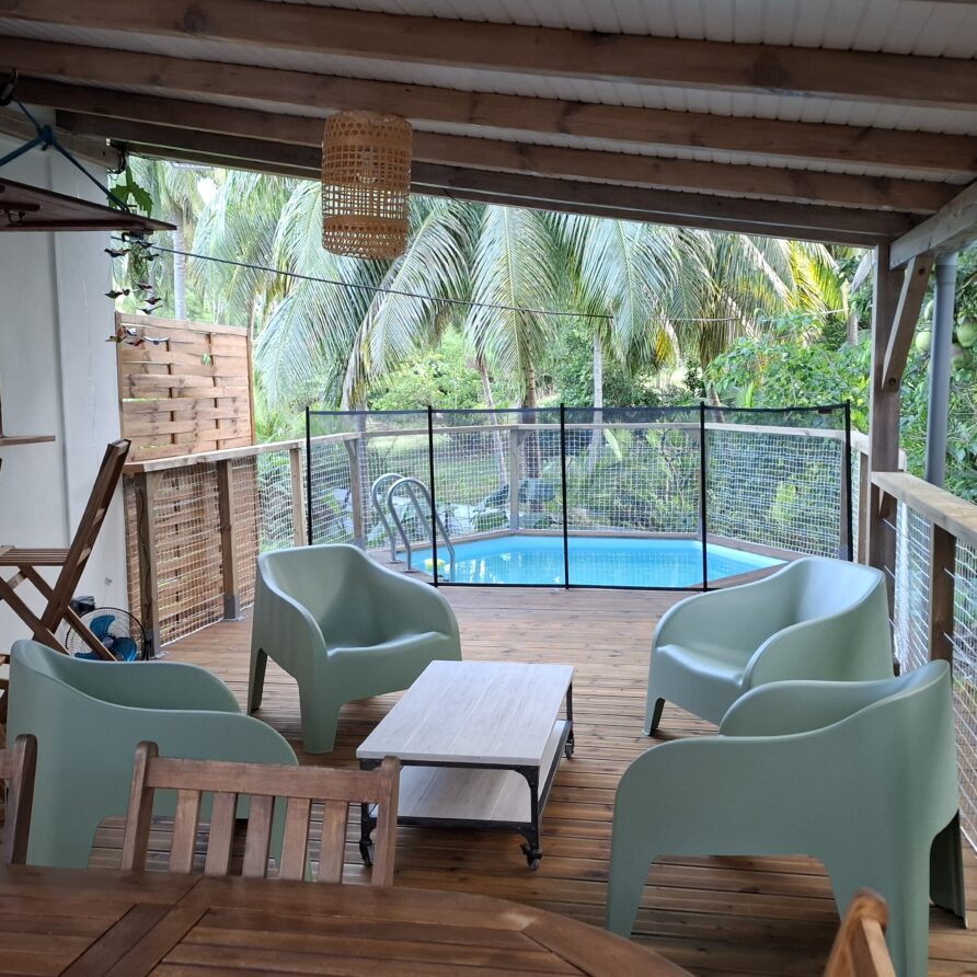 Chacun de nos gîtes dispose d’une grande terrasse sans vis-à-vis, d’une piscine indépendante et est entouré d’arbres et fleurs de Guadeloupe. Les colibris et ti-sucriers viendront vous saluer le matin au petit-déjeuner !
